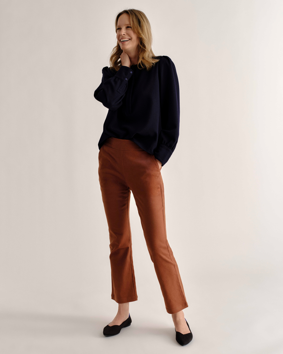 The new ankle length Ivy pant will surely be a wardrobe staple. With a slightly flared bottom opening and side pockets, these flattering figure framing pants are perfectly paired with sweaters or button downs. Pair with the Sage top to take you anywhere day to evening.
