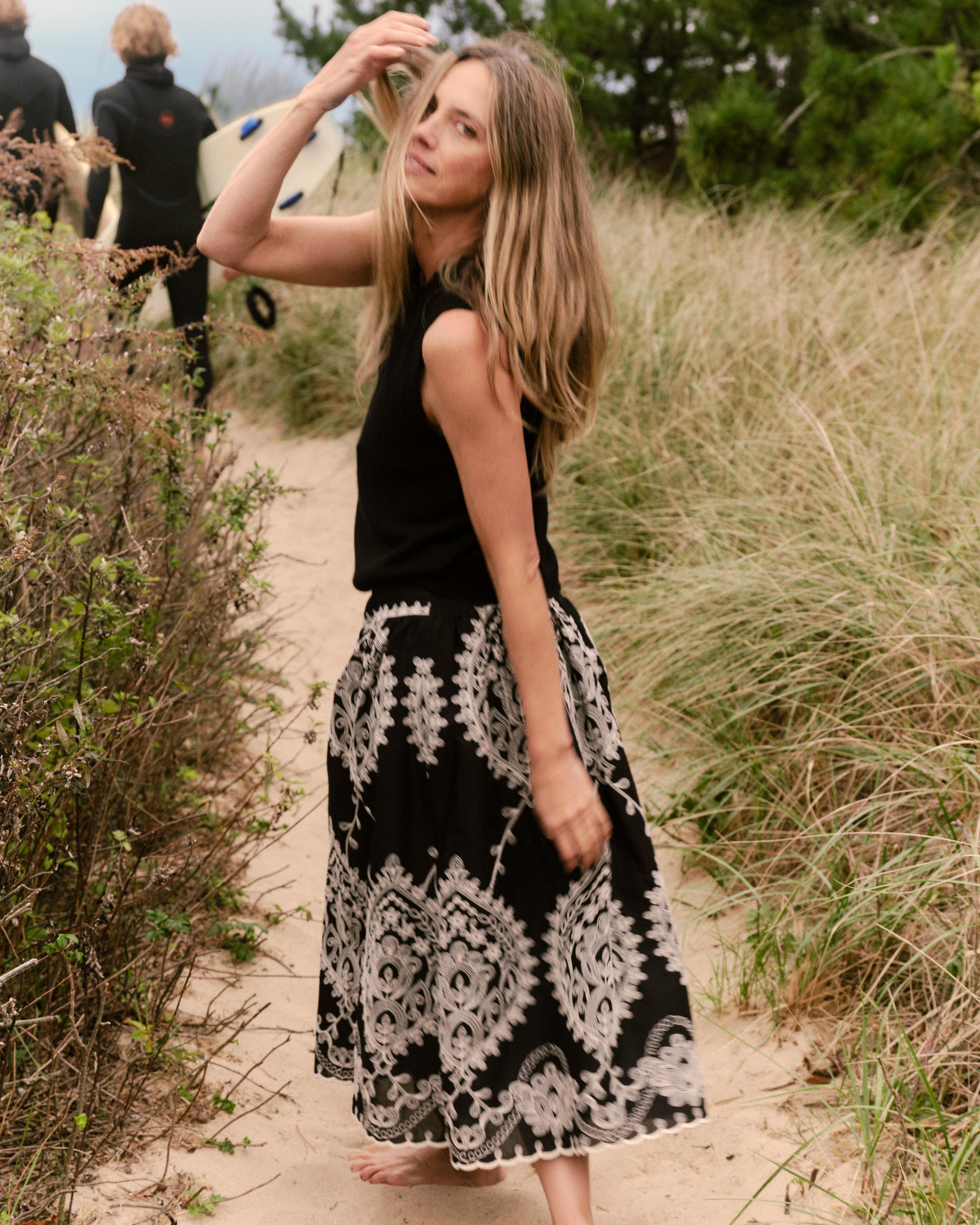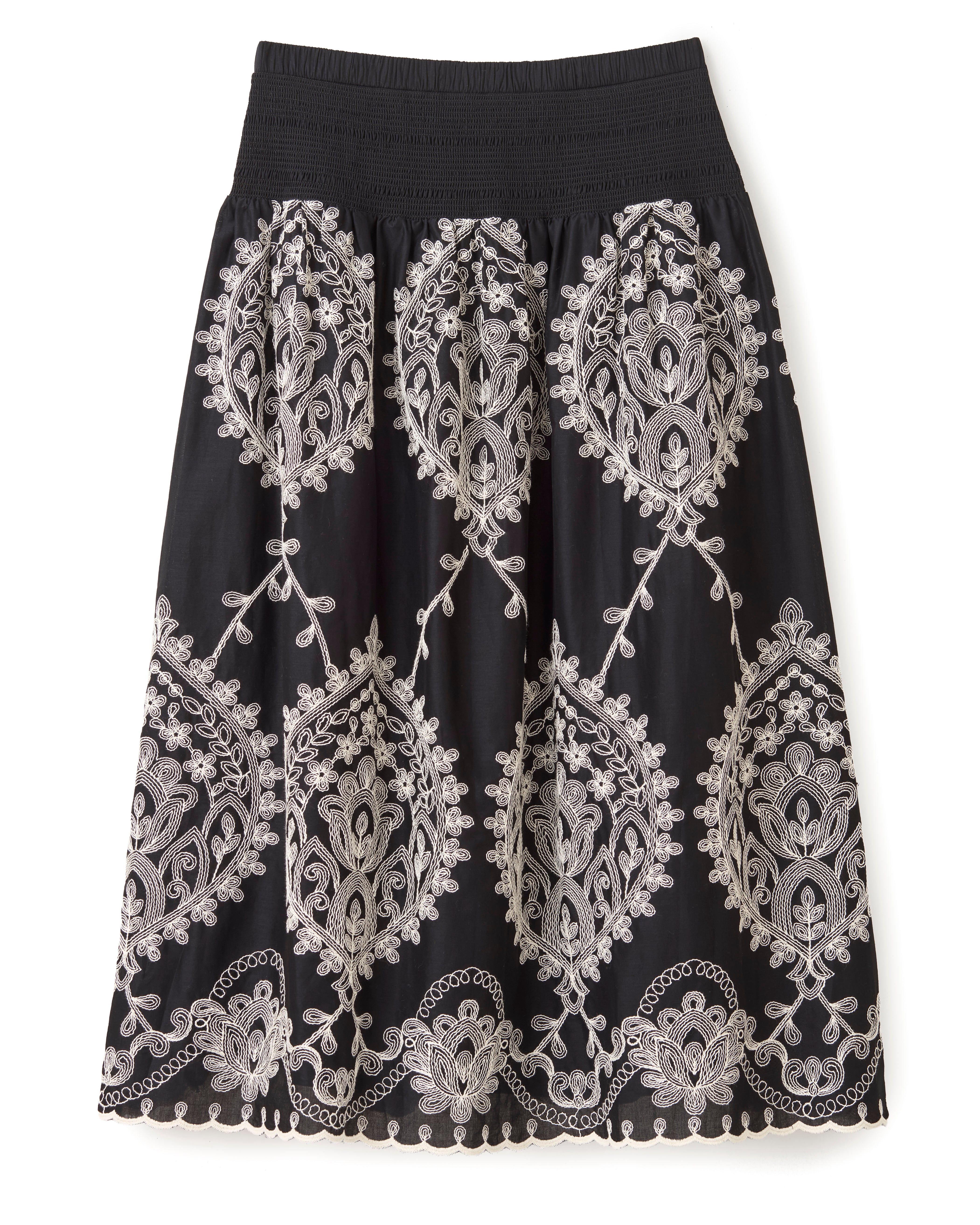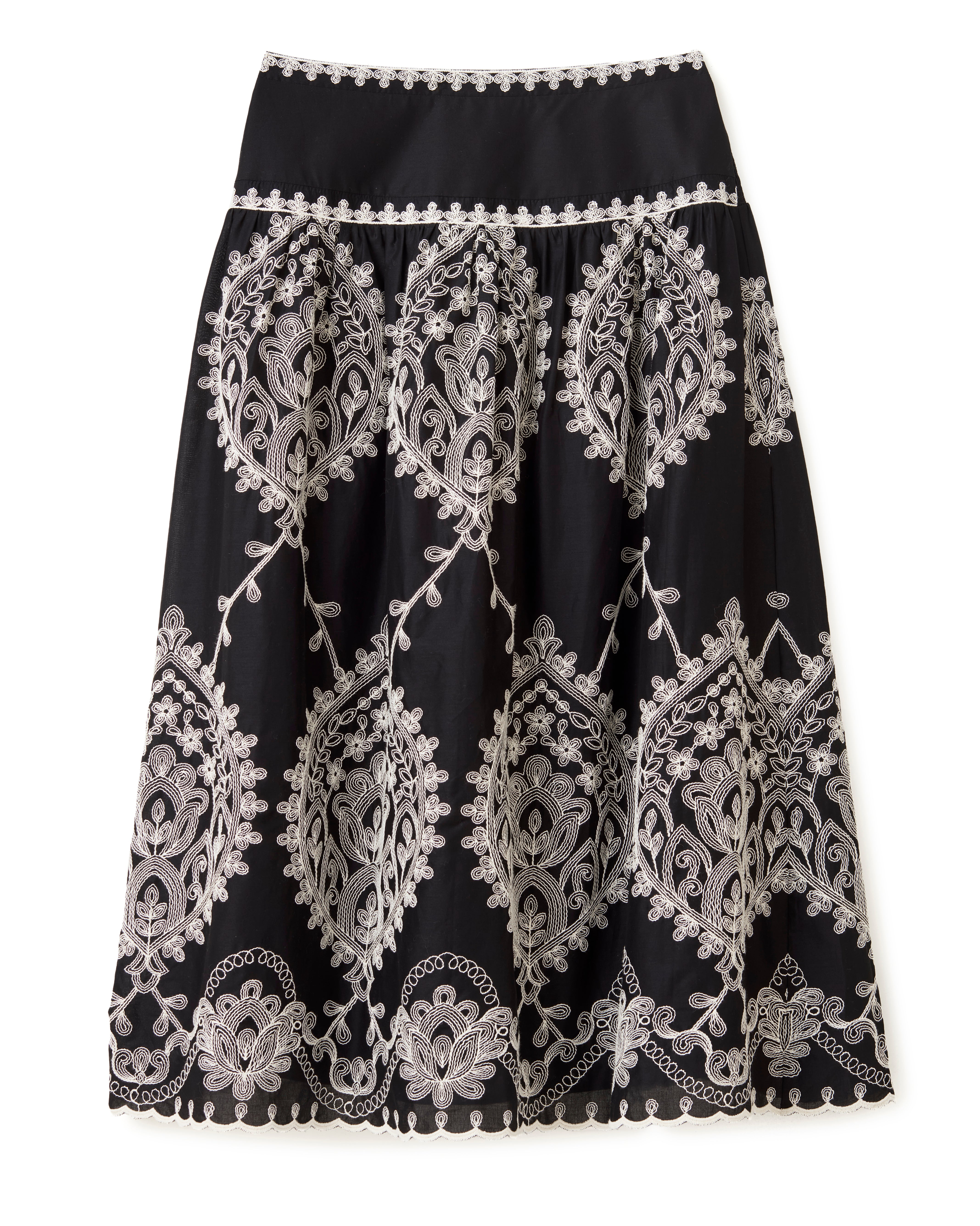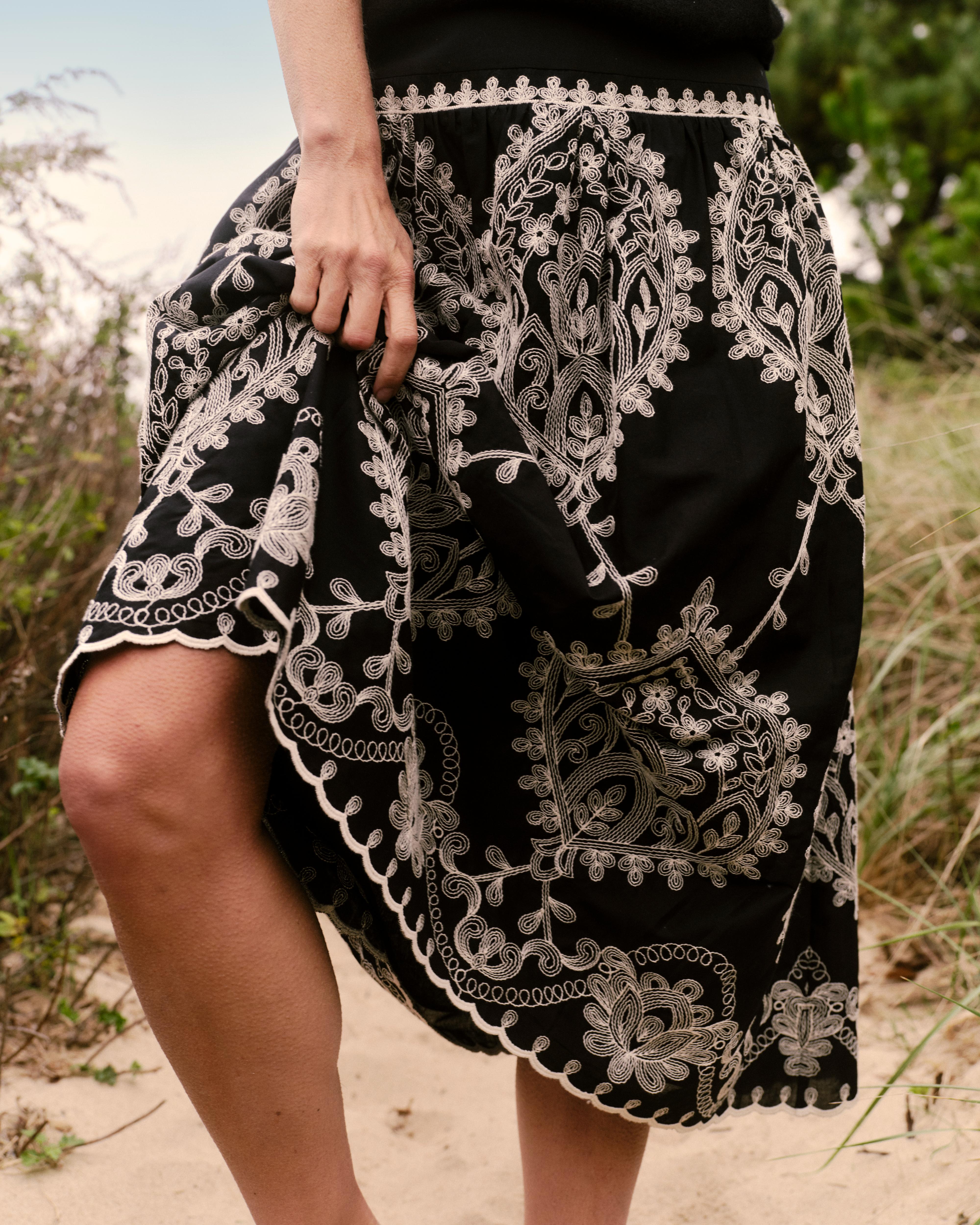 With the rhythm of a shoreline walk, the Georgia skirt feels fluid in motion, with embroidery that frames each step in stylish grace.