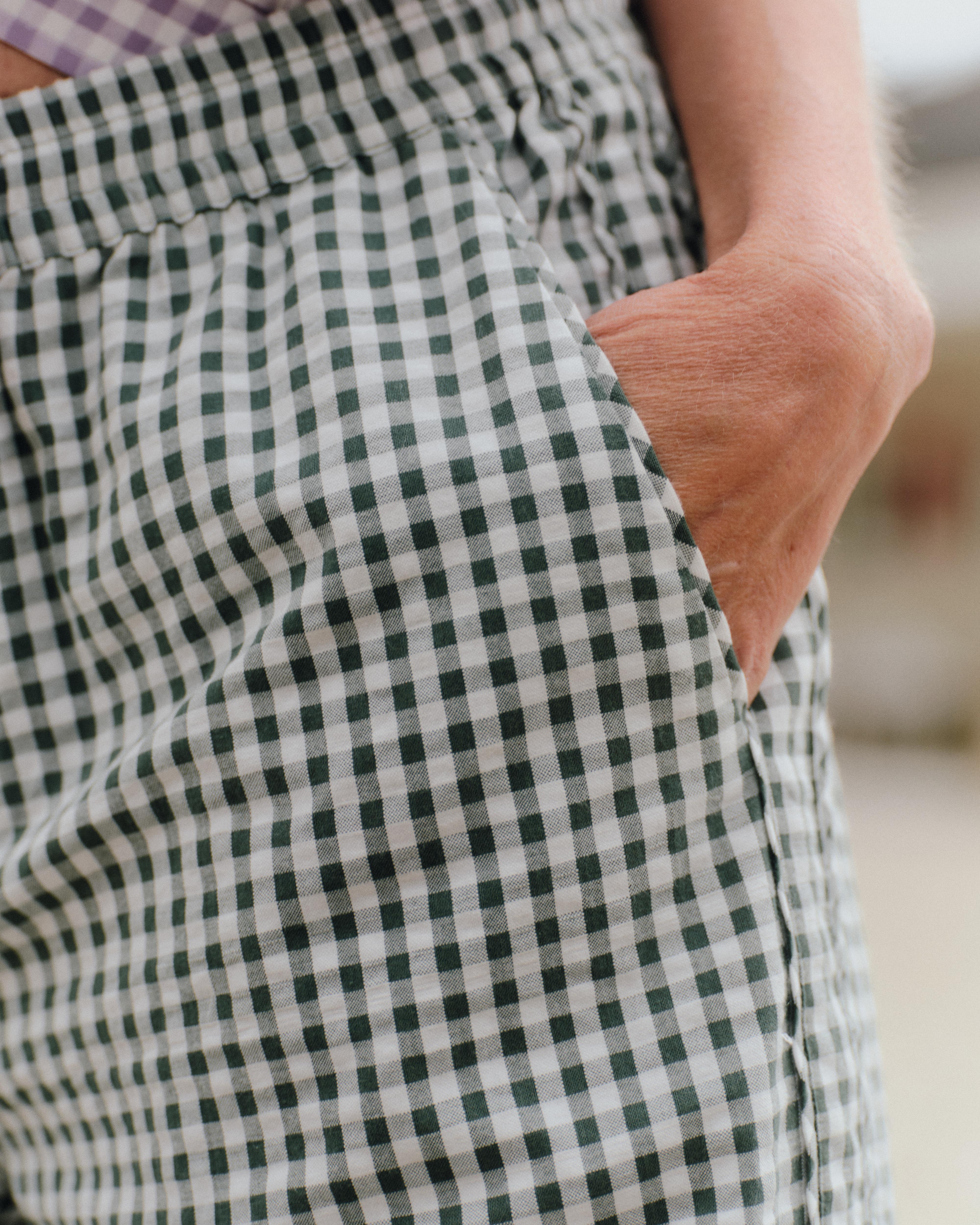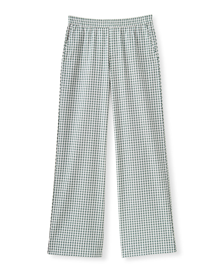 With the rhythm of a shoreline walk, the Mia Pant is designed for effortless travel and refined comfort. The drawstring waist and side panel details blend athletic ease with the classic texture of spring gingham.