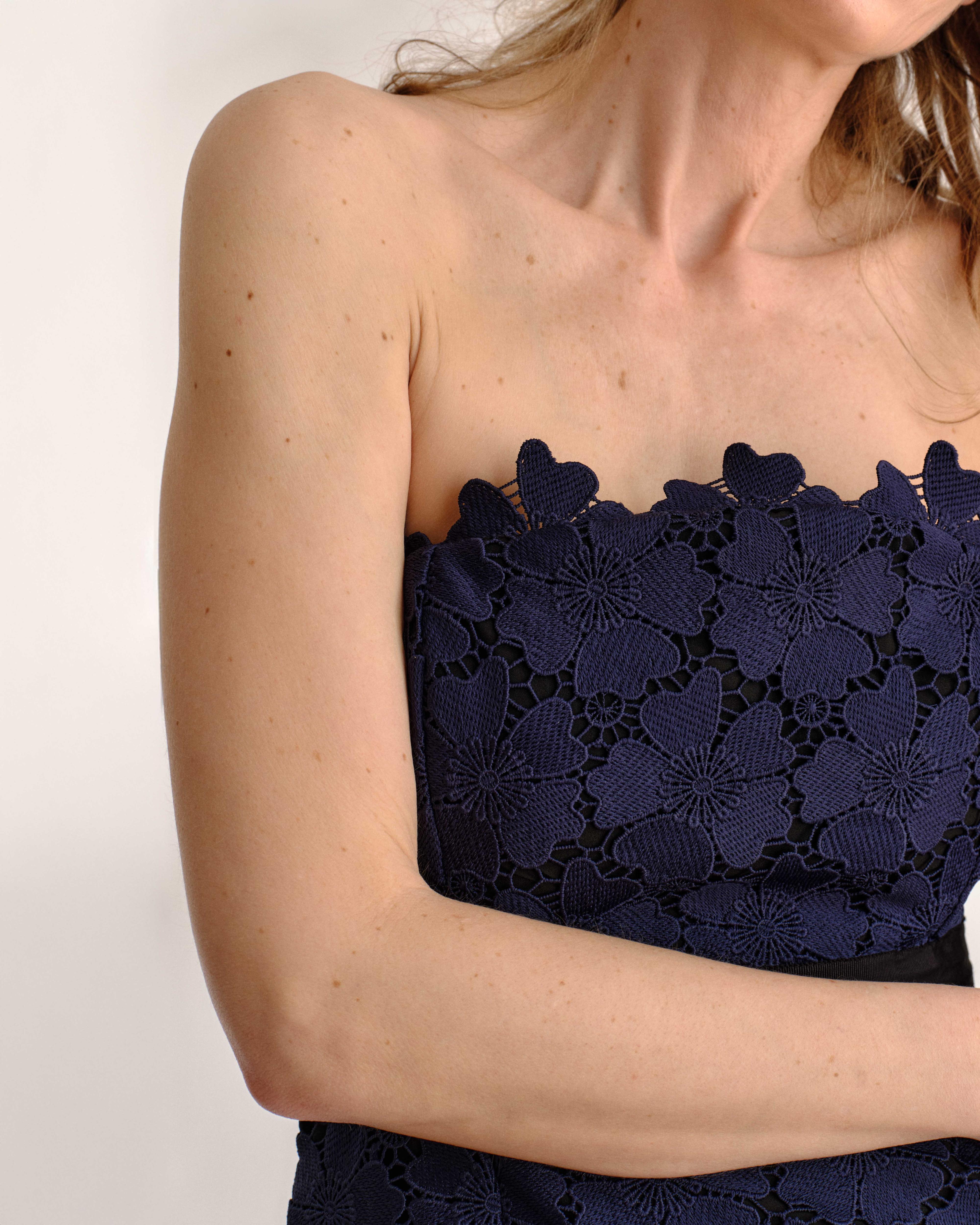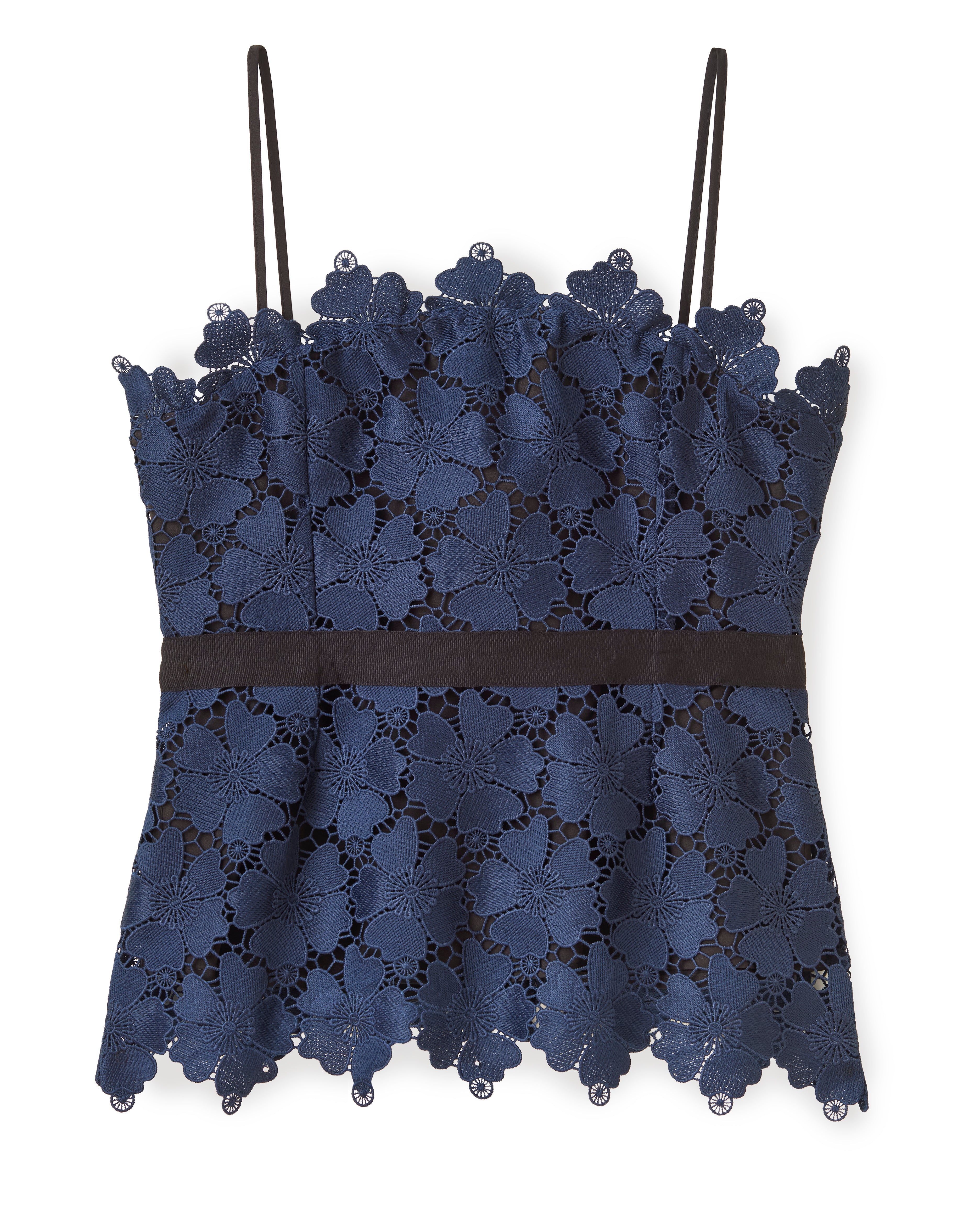 A sculptural edge defines the Romita top, blending sharp structure with intricate lacework for a look that’s made for moments that call for a statement.