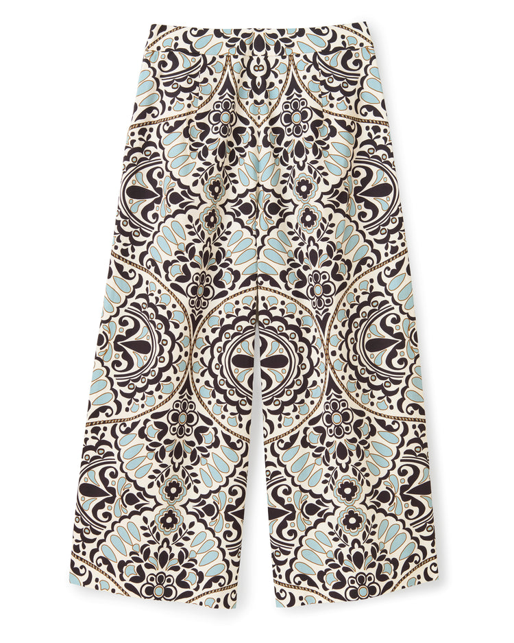 - High-rise wide-leg culotte silhouette elongates and moves naturally