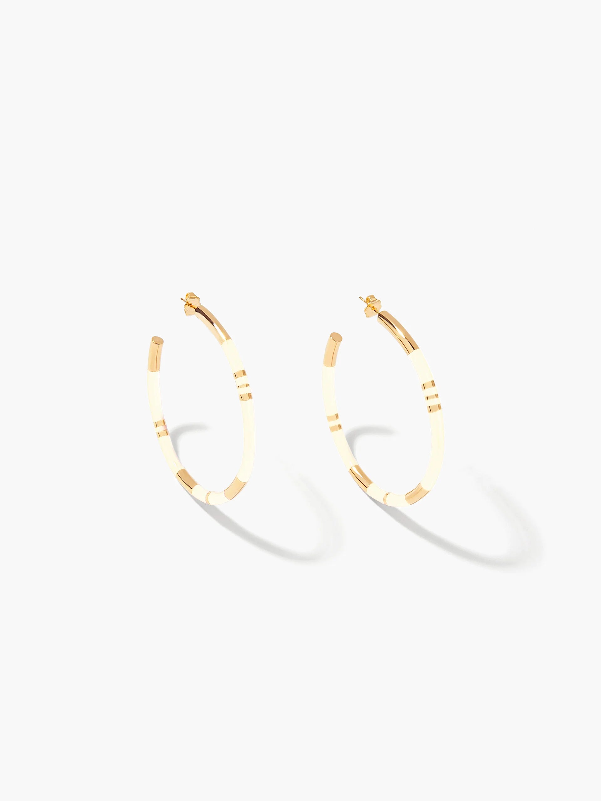 Positano hoop earrings with ivory-colored stripes in resin and gilded with 750/1000 yellow gold.