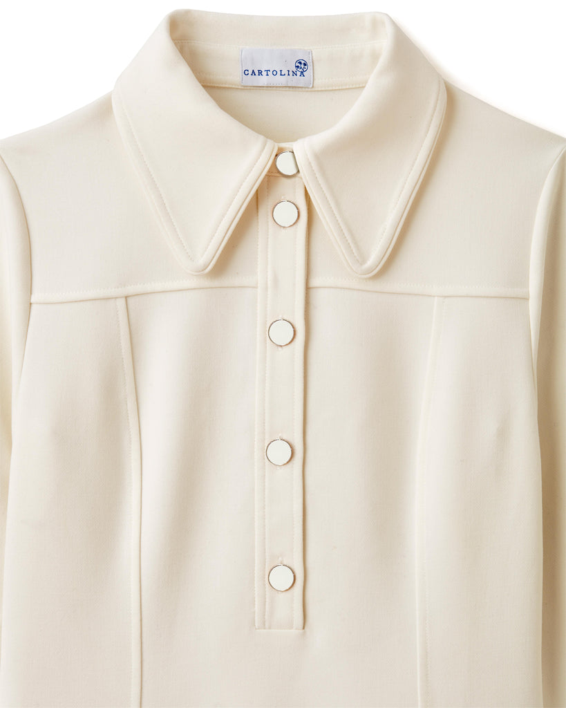 A shirtdress that nods to vintage tailoring, this crepe style is soon to be wardrobe staple. With a rounded collar, enamel buttons, and tall cuffs, it’s a piece made for weekdays that flow seamlessly into evenings.