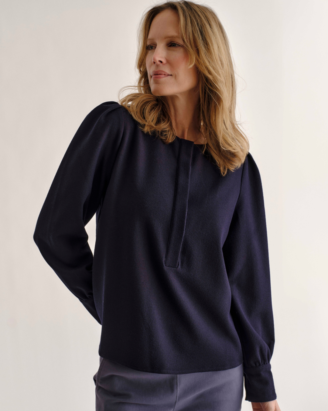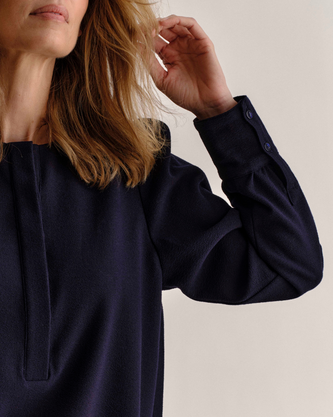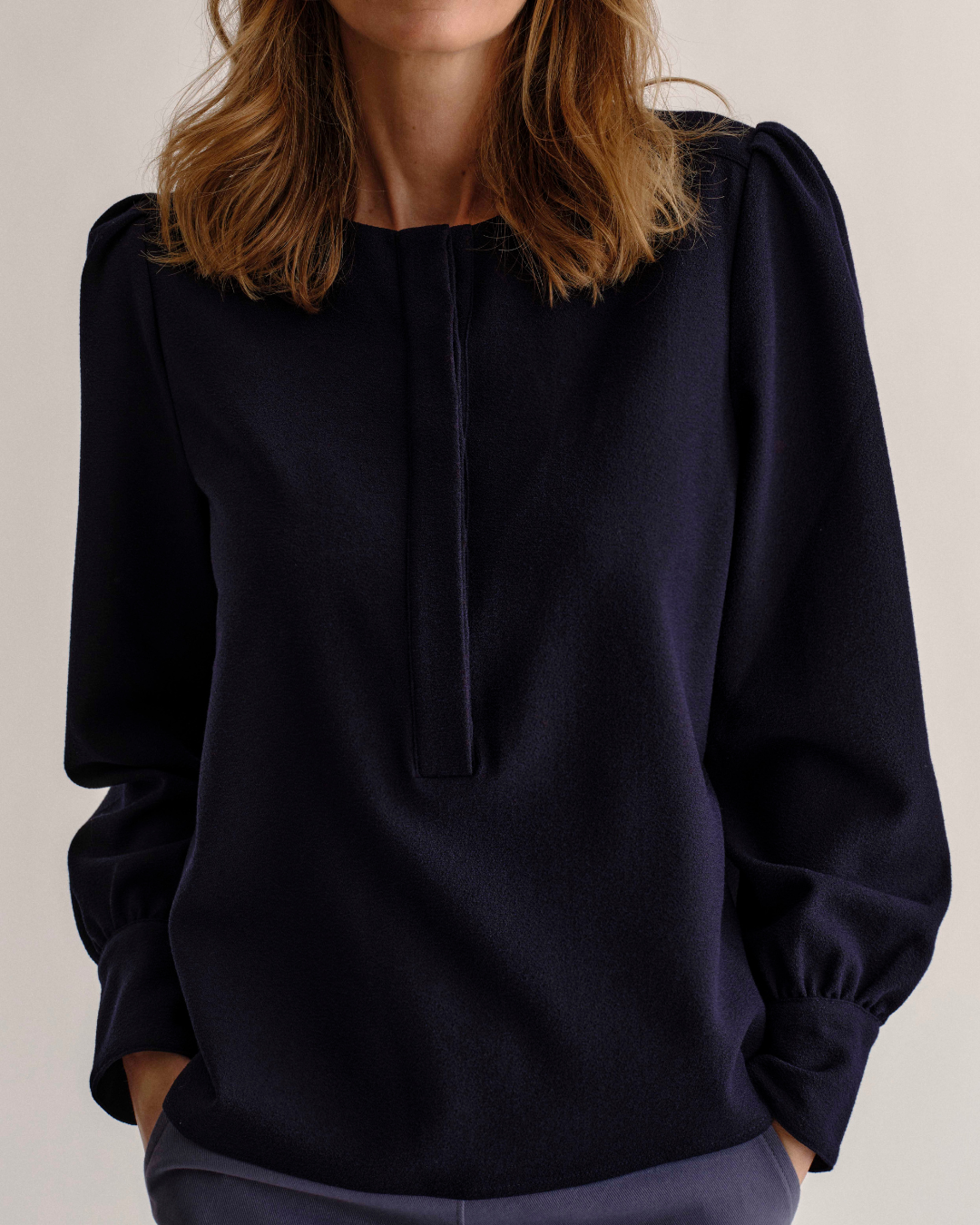 The Sage Top is made of our new rayon blend pebbled crepe, perfect to dress up and dress down.