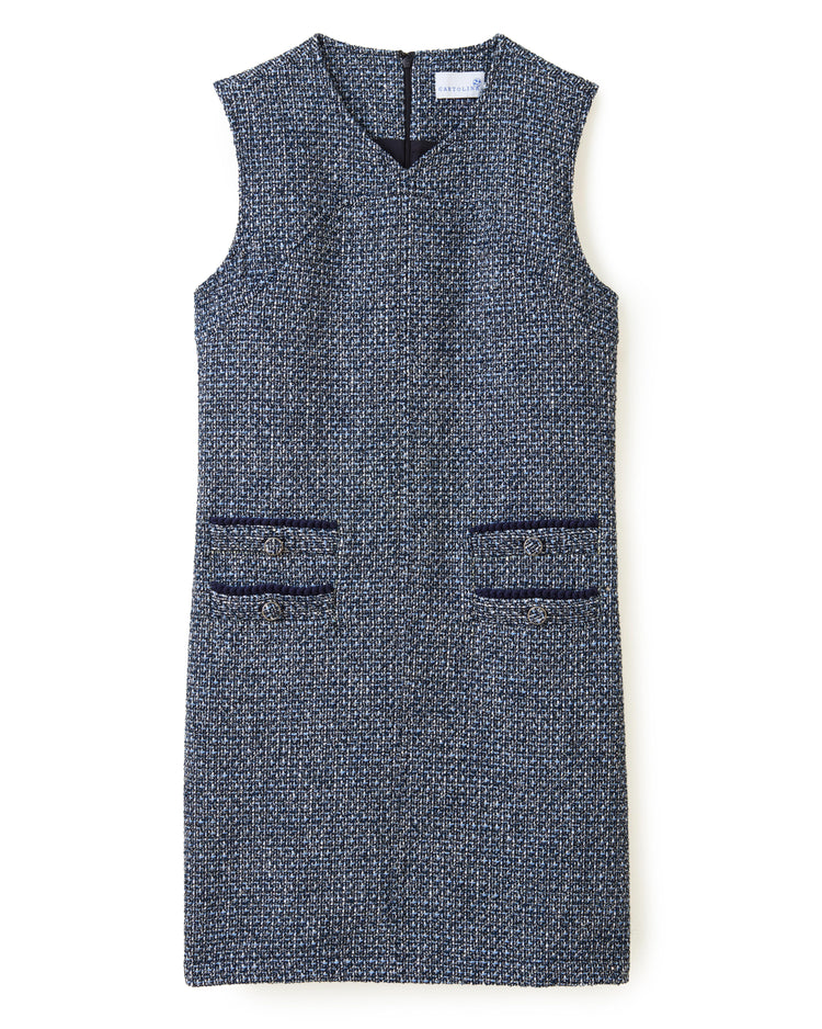 The favorite Lane Mini Dress is back in Blue Melange tweed for the perfect wear anywhere silhouette. Pair with the Louisa Jacket for a more elevated classic look or wear with a turtleneck, tights and knee high boots to create the ideal everyday look.