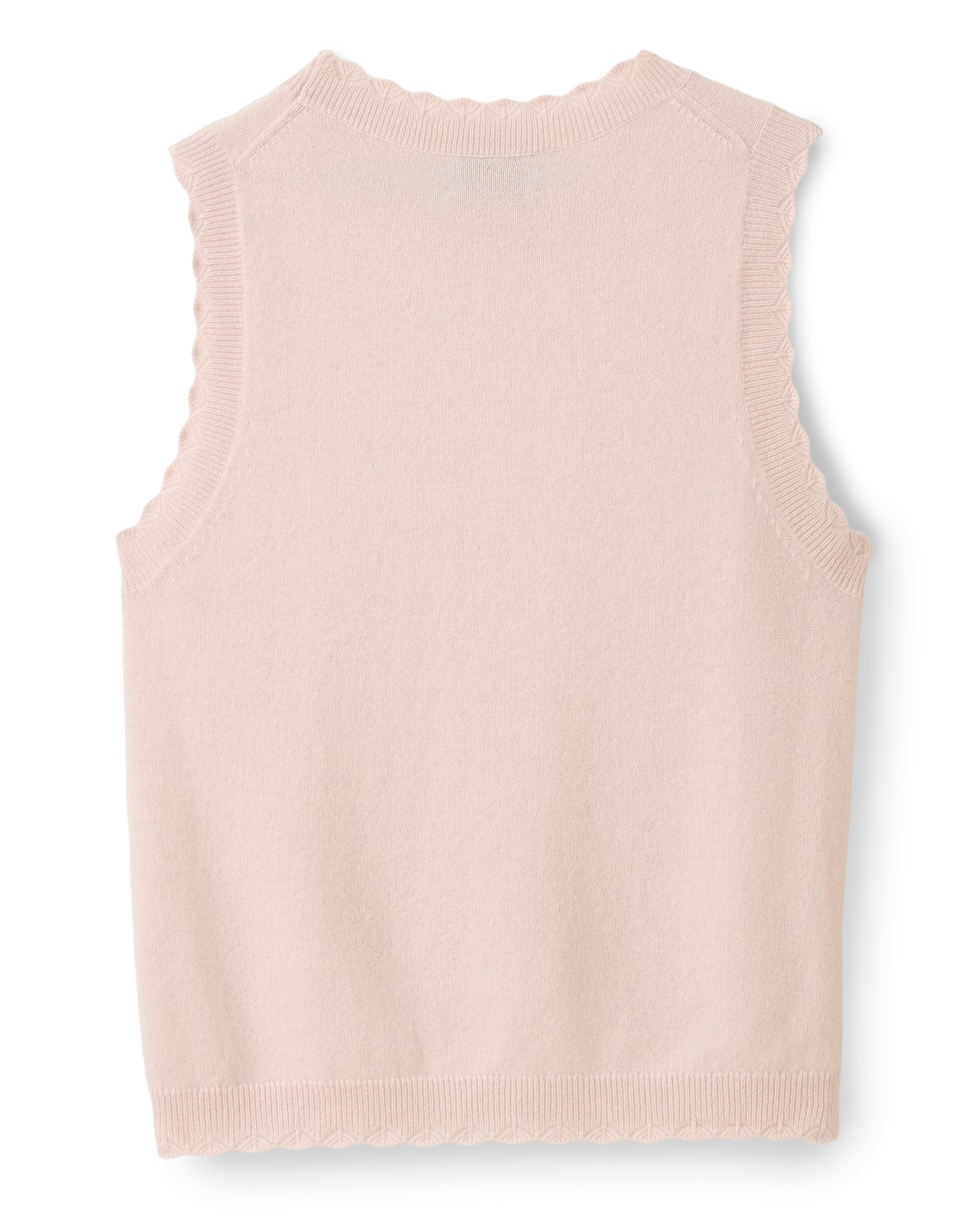 The Lou cashmere crewneck shell is an essential sweater to pair with its matching pearl buttoned cardigan or wear on its own. A  ribbed scalloped trim with modern geometric pattern and zigzag edge elevates this basic to must have status.