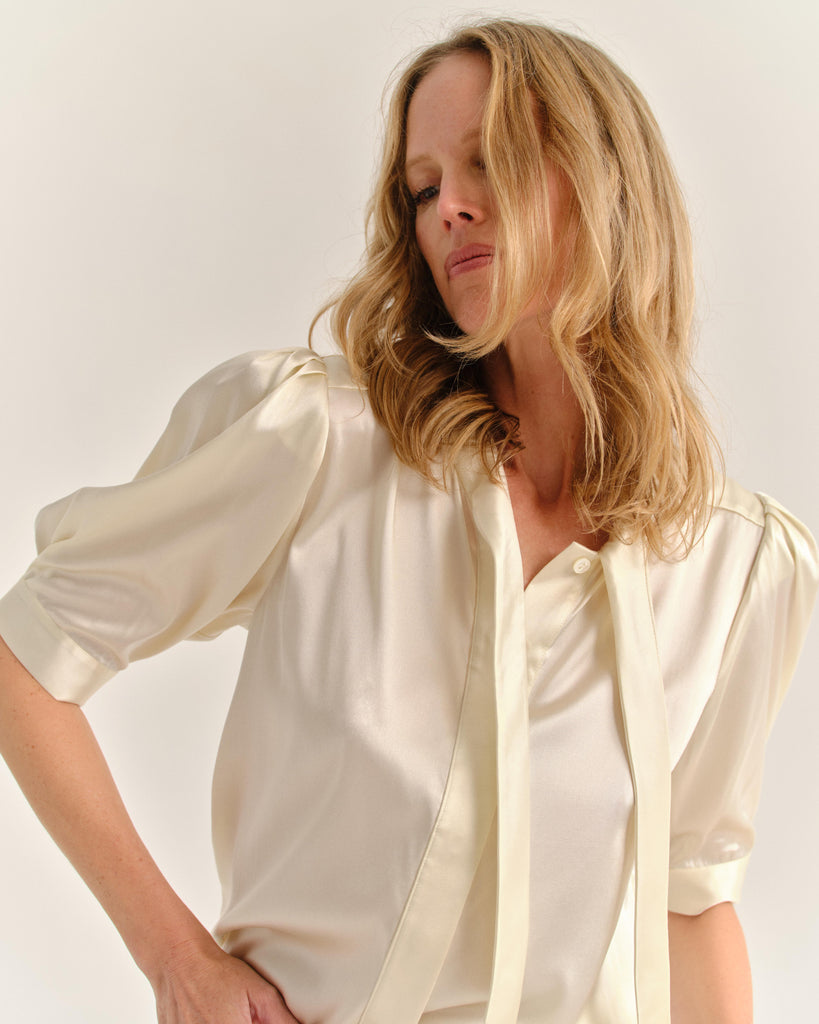One of Cartolina’s original beloved styles, the Peggy arrives this season renewed in silk, making it a truly timeless blouse.