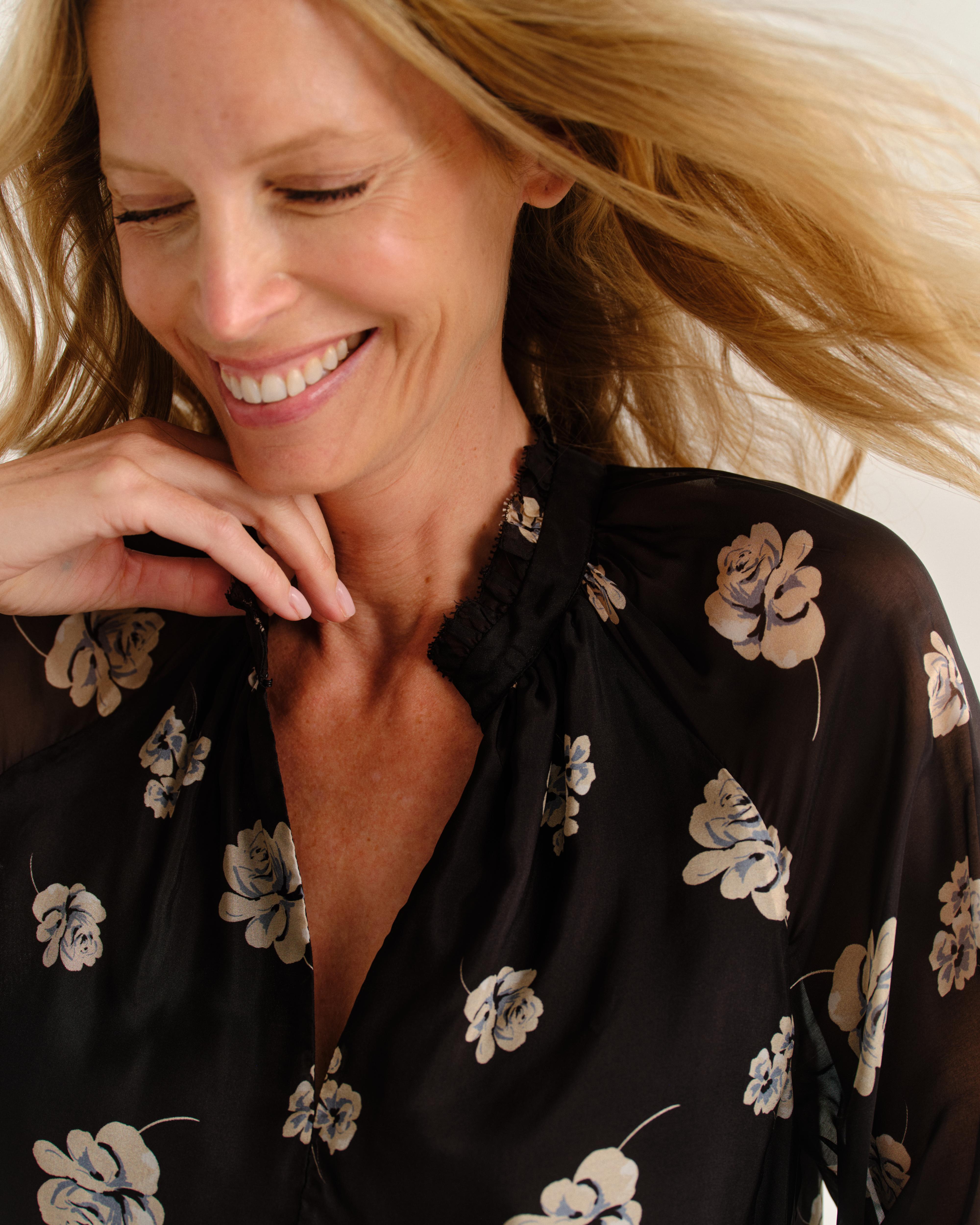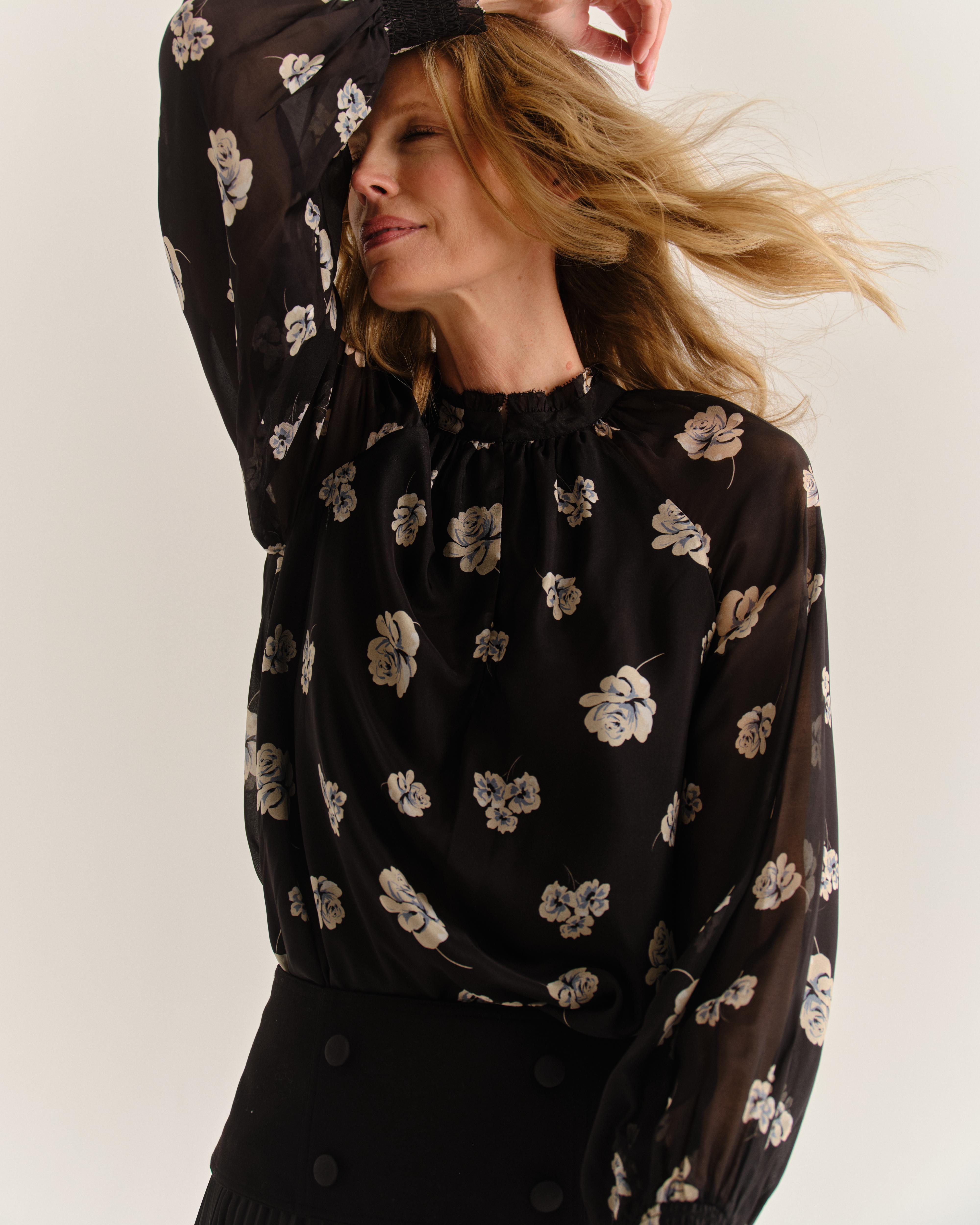 Crafted in silk chiffon the Sawyer blouse brings a soft elegance to everyday dressing with every detail meant to feel romantic and impossibly light.